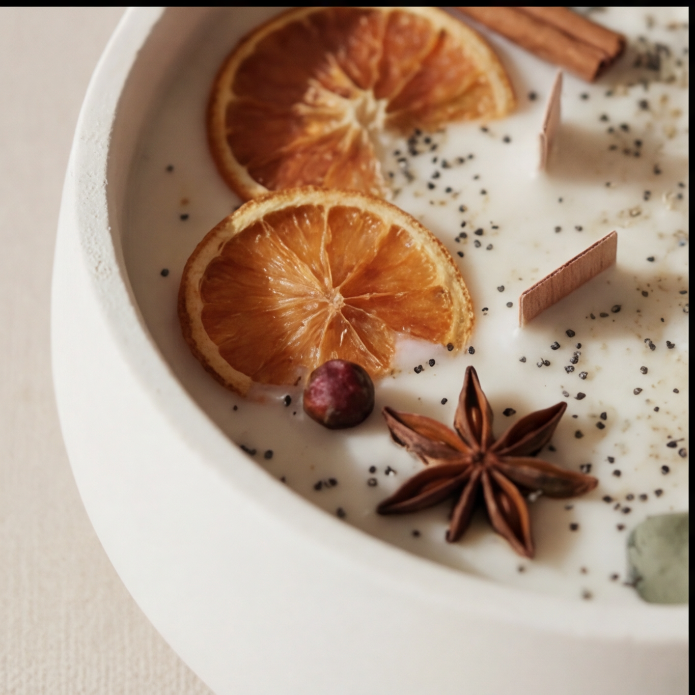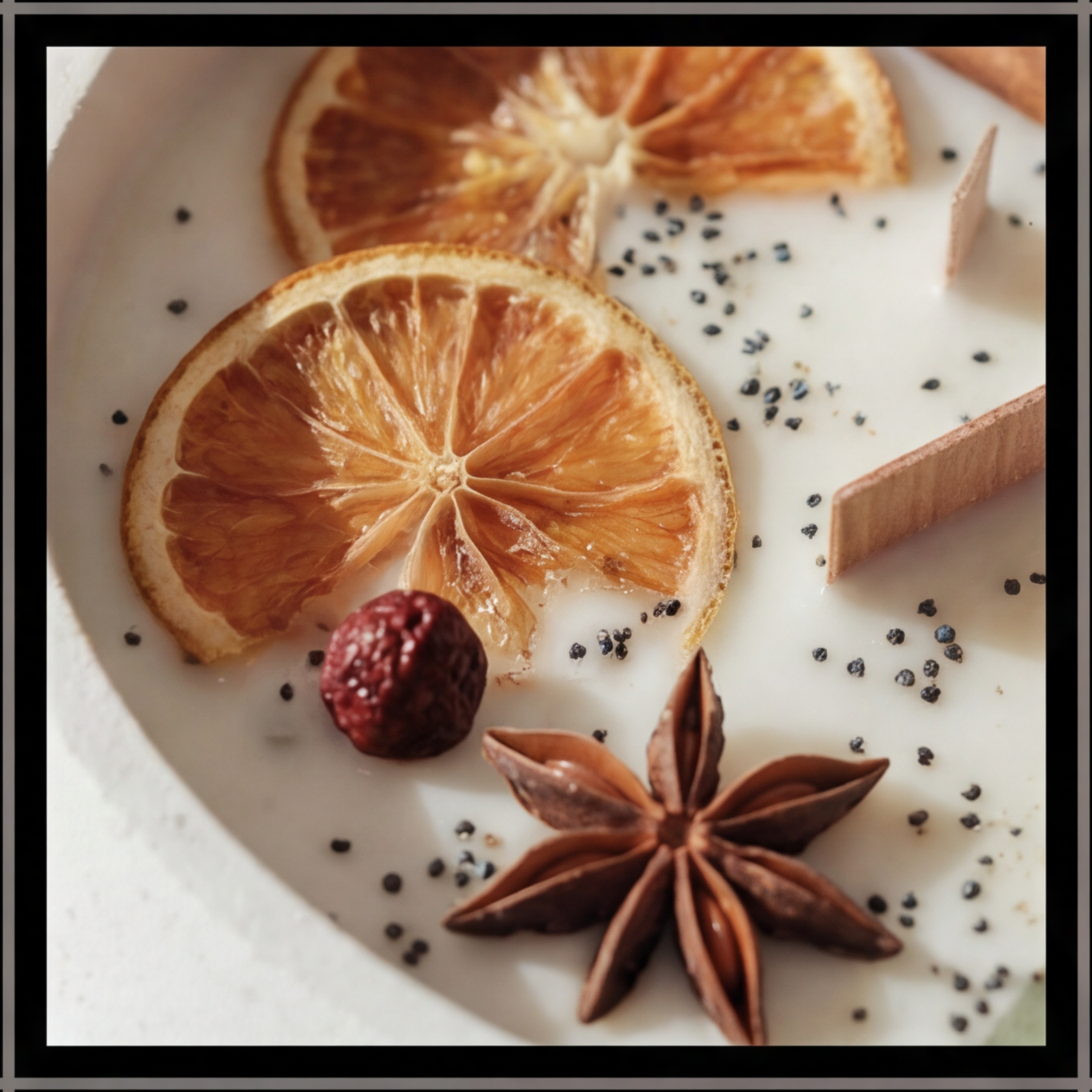 Su aroma de naranja, jengibre, canela y vainilla abraza como manta en invierno. Tiene esa magia especiada que transforma el frío en refugio, que convierte lo cotidiano en momento de calma.