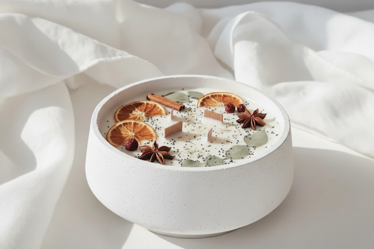 Cada vela Nuvola Momentos es única. Las pequeñas variaciones en color y textura del cemento son parte de su carácter artesanal.