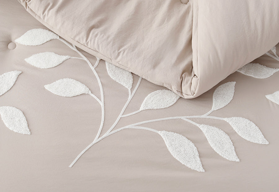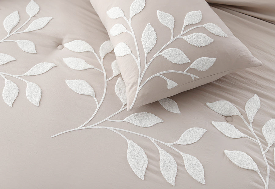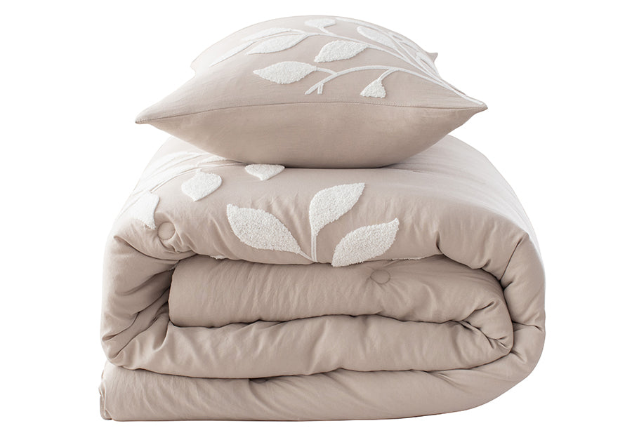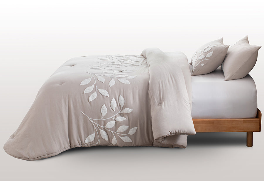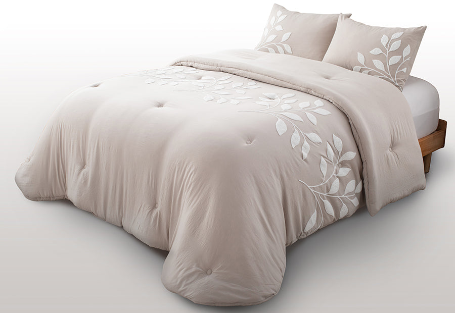 Colcha Edredón Nestor de Clara Vidal en color beige. Una prenda con un bordado elegante, de calidad. Tacto suave y acogedor. Ideal para el invierno. Confeccionado en 100% poliéster, este conjunto ofrece una textura suave gracias al tejido lavado a la piedra, y su relleno de 400 gramos lo convierte en el aliado perfecto para las noches fresquitas de otoño e invierno. El guateado realza el diseño y da cuerpo al edredón sin hacerlo pesado.