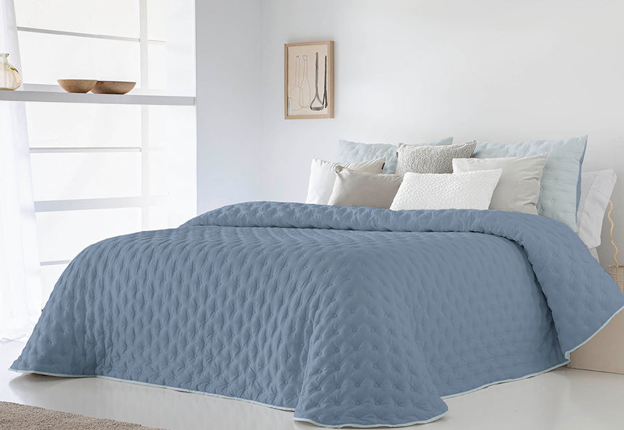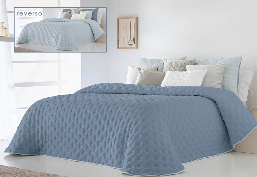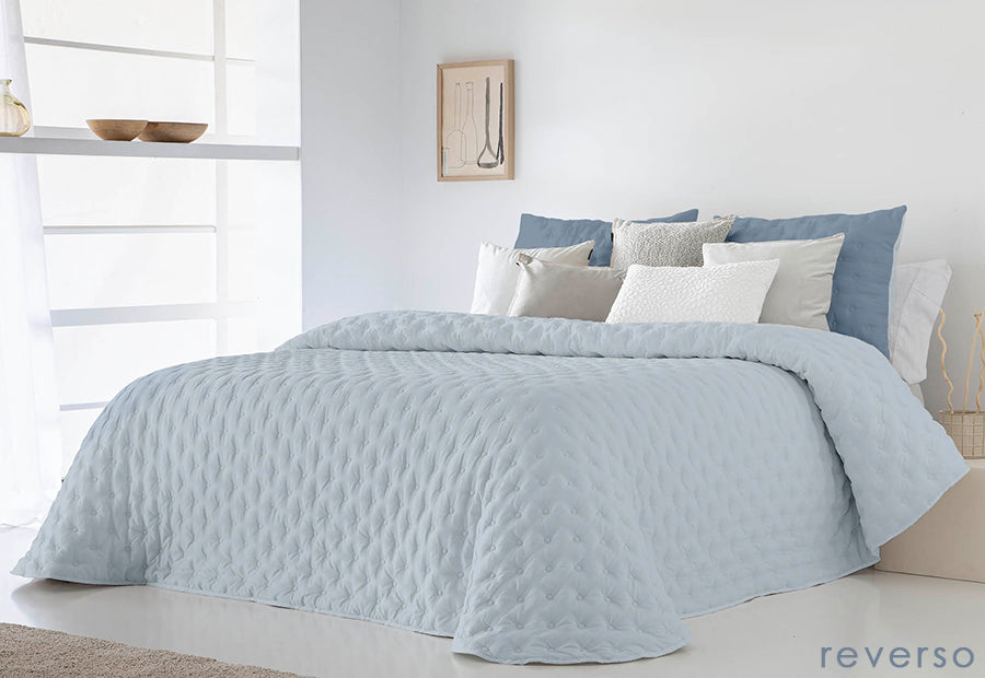 Edredón comforter modelo Anisa color azul reversible de la marca Fundeco by Antilo. Relleno tacto pluma. Modelo reversible con las dos caras iguales. Garantía de máxima calidad.