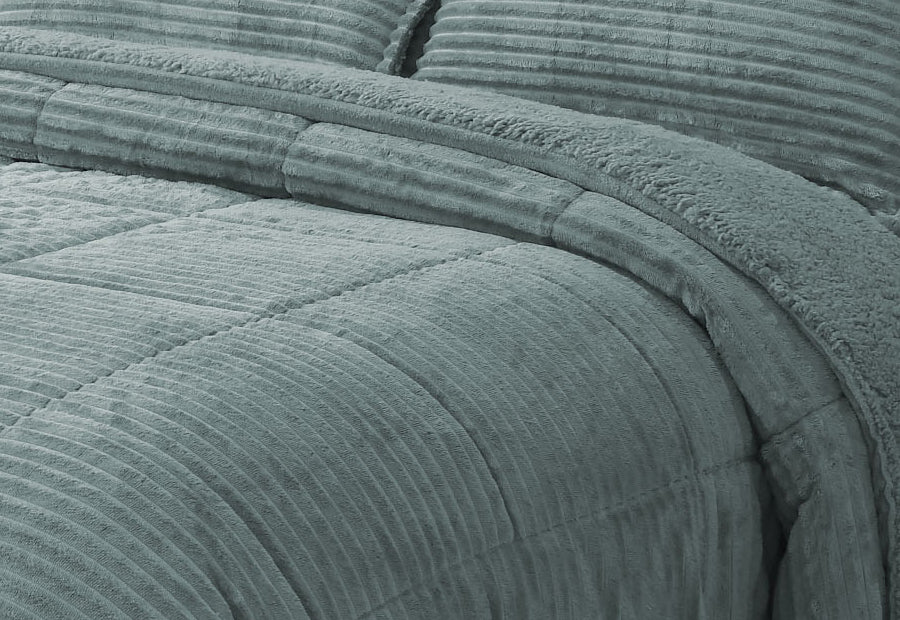Edredón conforter modelo Alice color menta confeccionado con tejido de sedalina en la cara principal y sherpa borreguito a tono en el reverso de la marca DN moda hogar.