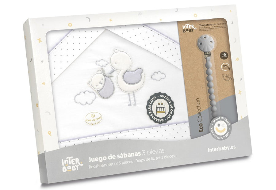 INTERBABY - Sábana Algodón+Chupetero Cigüeña-Oso 03338-18 Cuna