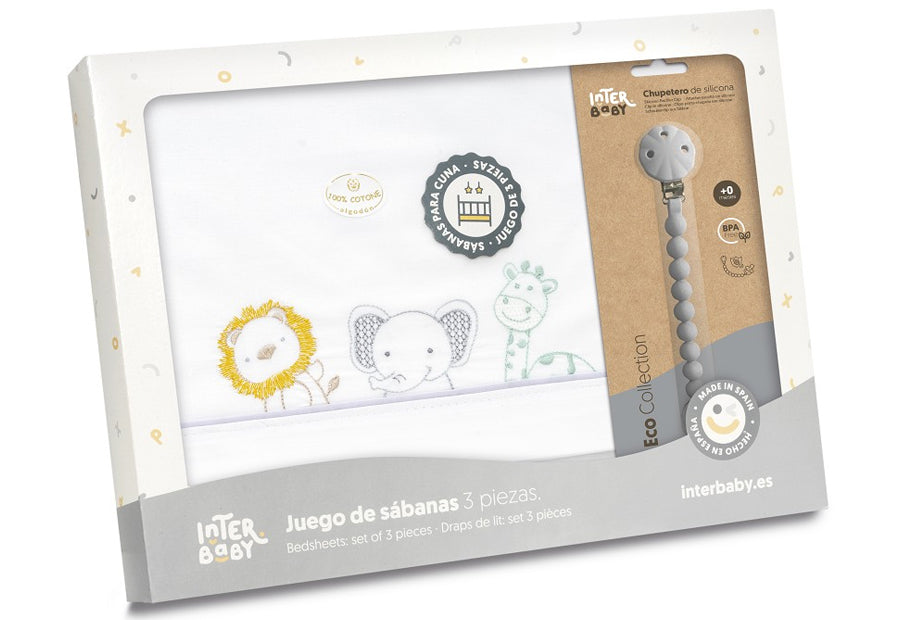 INTERBABY - Sábana Algodón+Chupetero Selva Animals 03337-09 Cuna