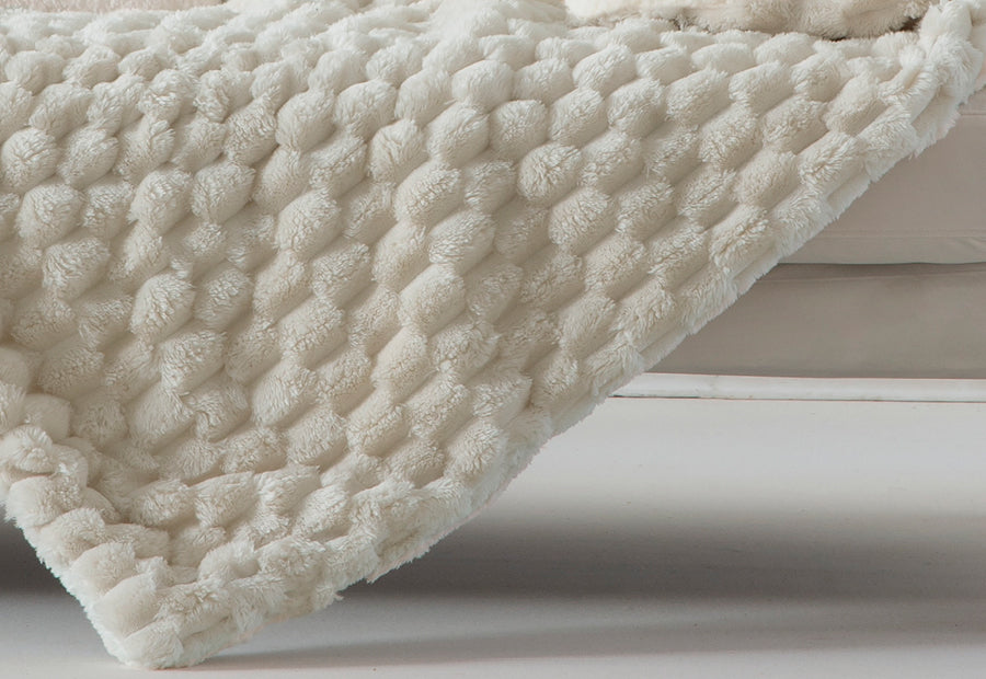 Manta plaid en tejido sedalina en relieve textura de la marca Antilo. Tacto Soft muy suave y confortable.