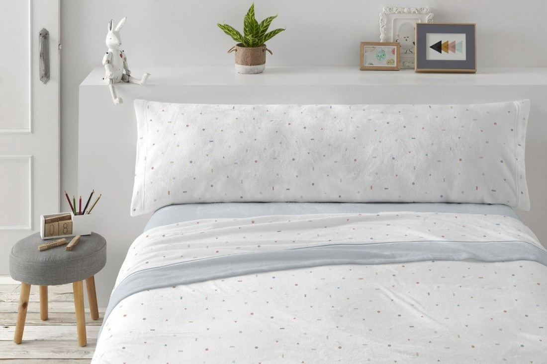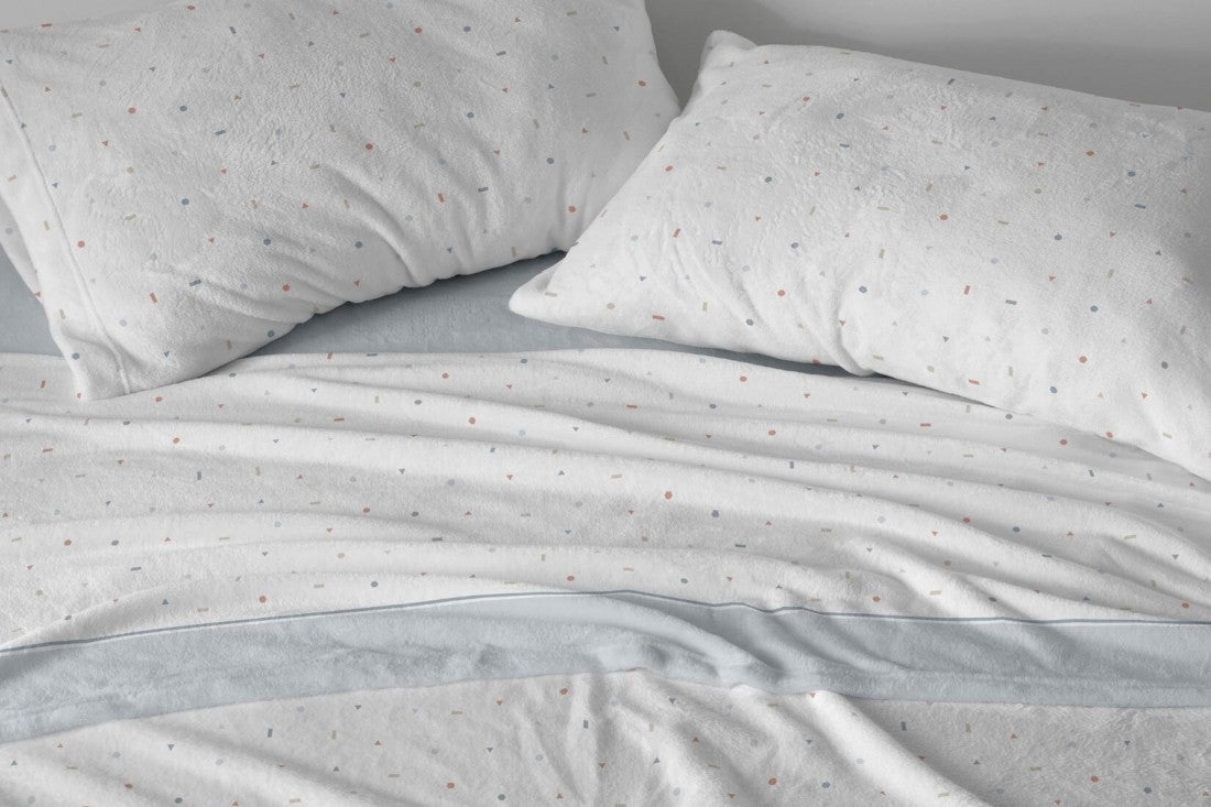 Sábanas coralina de la marca Burrito Blanco en color azul. Modelo alegre y colorido. Una gran opción para los meses de inviernos, que no solo ofrecerá un estilo y diseño original a tu cama, sino que proporcionará un cálido y acogedor descanso.