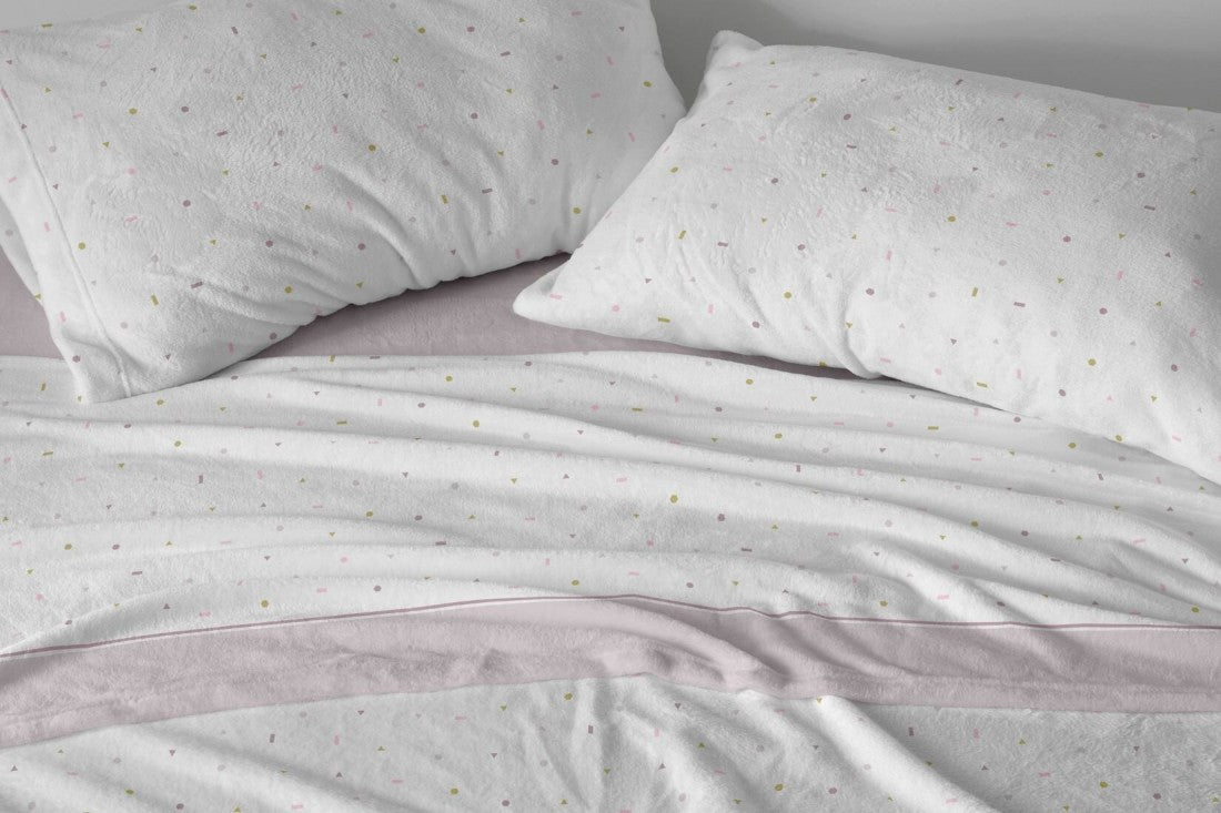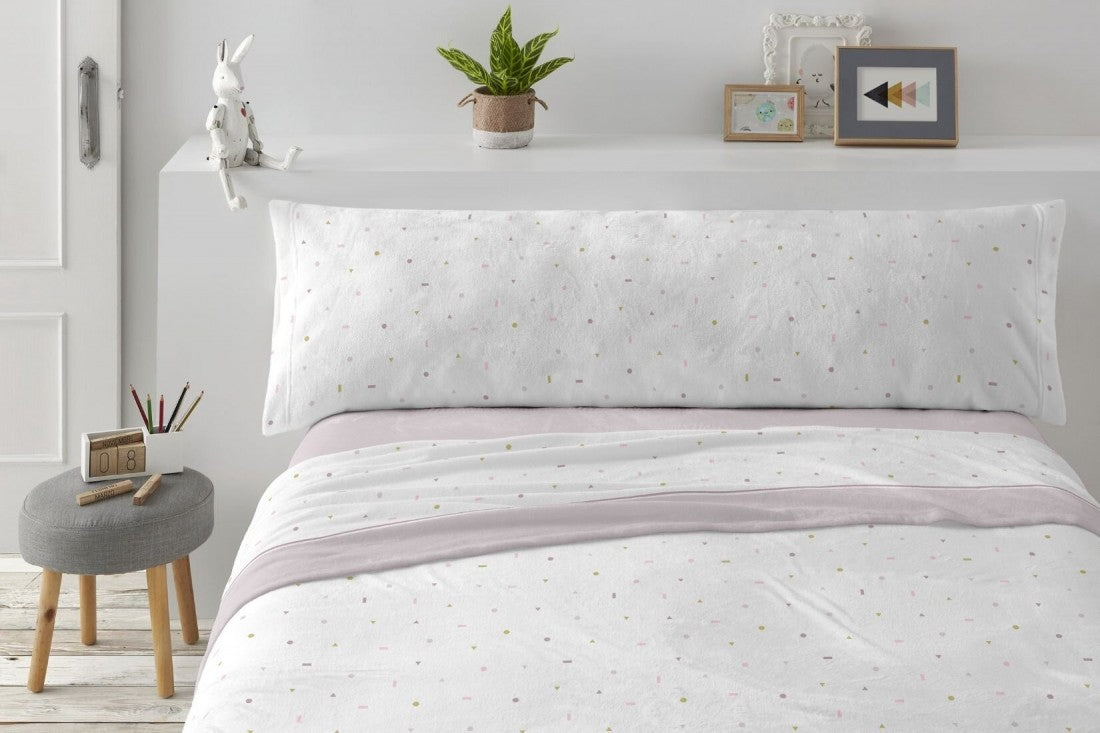 Sábanas coralina de la marca Burrito Blanco en color nude. Modelo alegre y colorido. Una gran opción para los meses de inviernos, que no solo ofrecerá un estilo y diseño original a tu cama, sino que proporcionará un cálido y acogedor descanso.