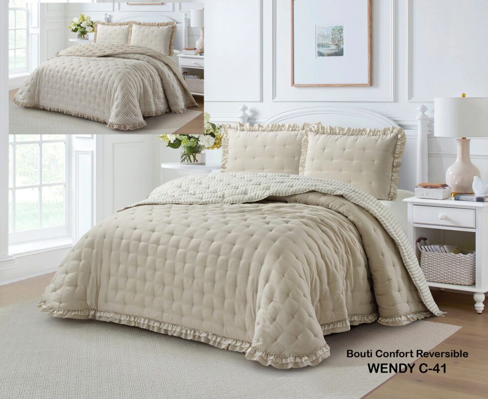 Bouti edredón confort con volantes de la marca Dolz modelo Wendy en color lino. Modelo reversible con dos caras diferentes.