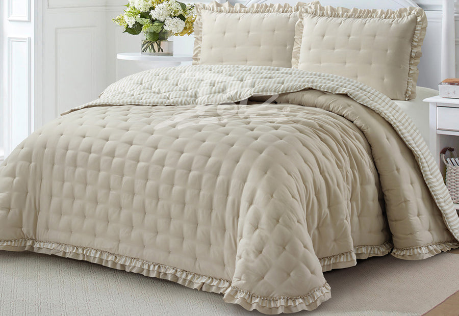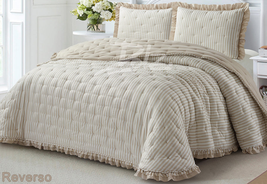 Edredón con Volantes Reversible DOLZ Wendy color lino