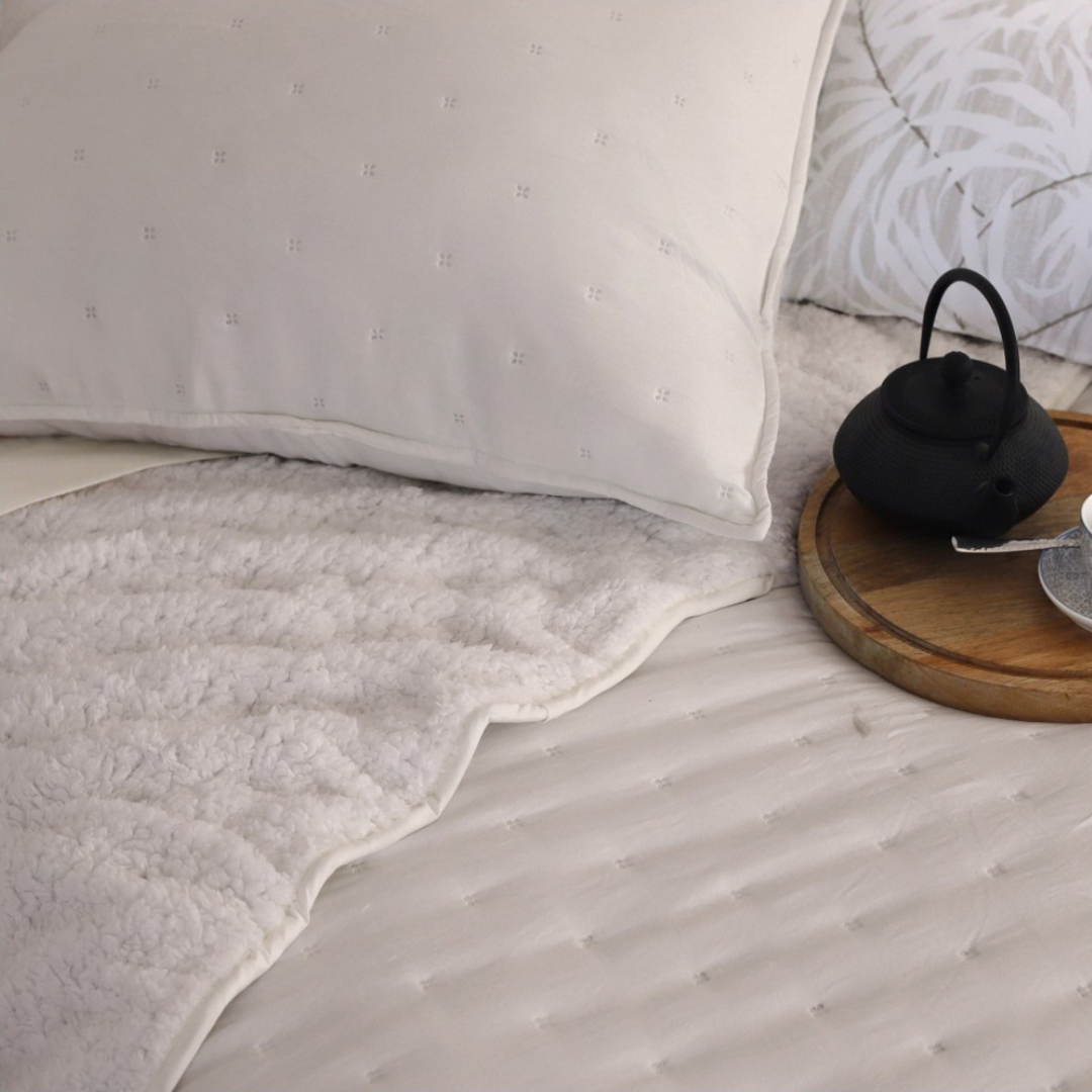 Edredón soft con borreguillo color marfil. Edredón con tacto suave y de larga duración perfecto para los meses de invierno gracias a su borreguillo en el interior de la prenda. Tiene un gramaje de 430gr/m2 lo que hace que sea cálido y suave. Está disponible para todas las medidas y en varios colores.