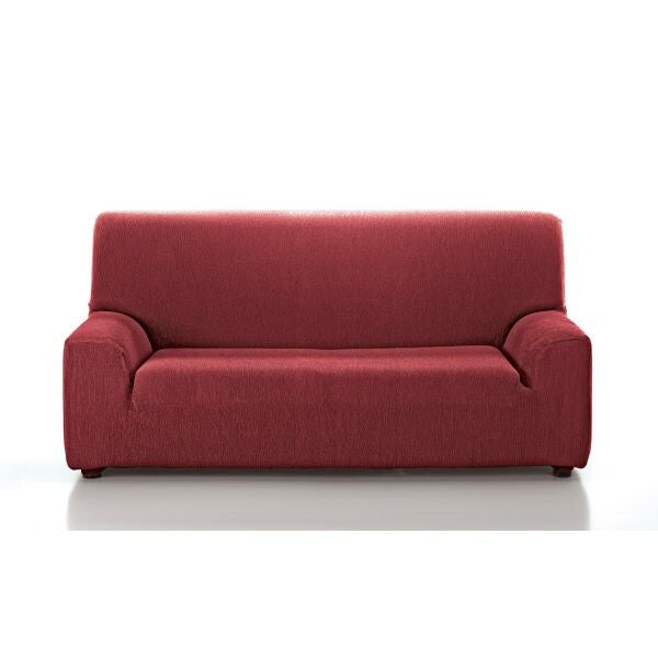 Funda de sofá elástica de la marca Casa Textil, modelo Jara en color rojo, diseñada en gran variedad de colores lisos para elegir el que mejor se acomode a la decoración del salón. Confeccionada con tejido rugoso resistente a los roces.