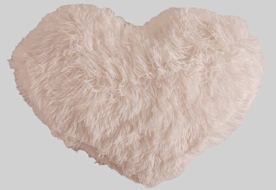 Cojines llenos en forma de corazón y en tejido flou flou de la marca Innova Home. Colores disponibles : camel, blanco, azul, amarillo, rosa, gris, morado y verde.