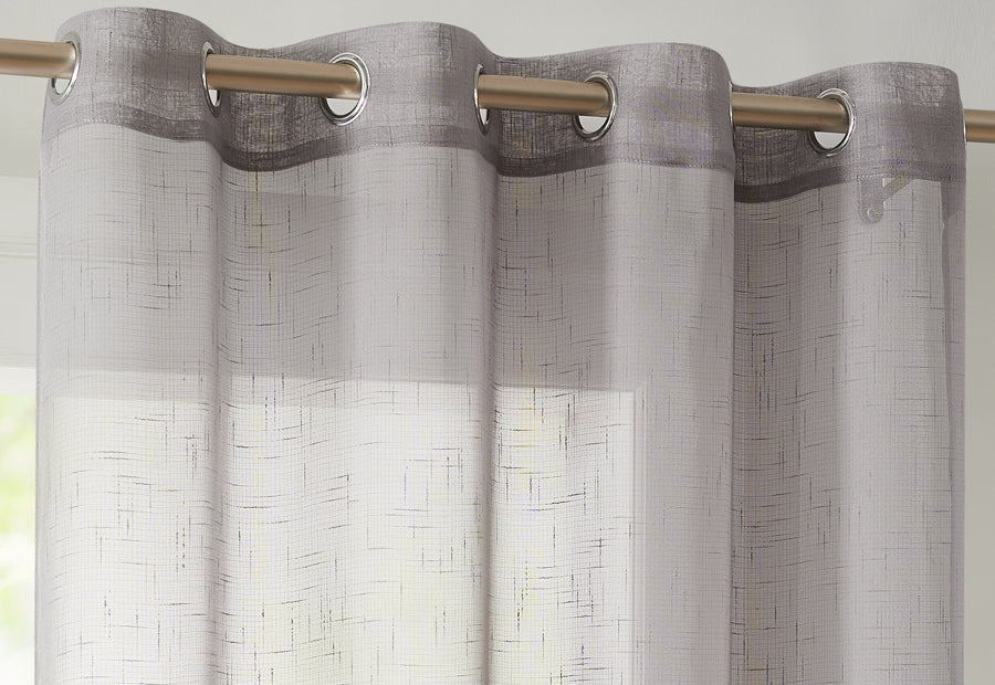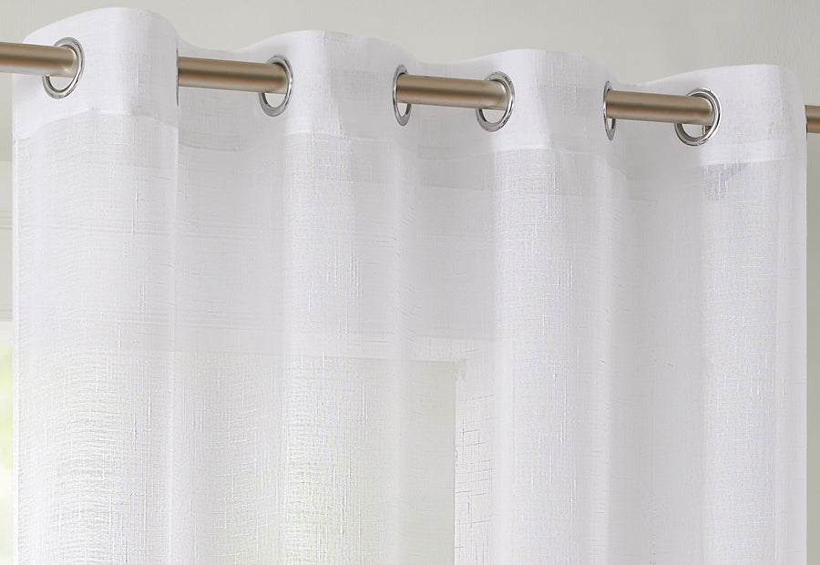 Cortina confeccionada con tejido de visillo rústico en liso de la marca Camaltex. Cuatro colores disponibles: blanco, beige, gris y crudo. Anillas de acero inoxidable. Tamaño cortina: 140x265 cm. Composición: 100% poliéster. Packaging en bolsa de pvc, cartón impreso con fotografia e información y percha de pvc para colgar.
