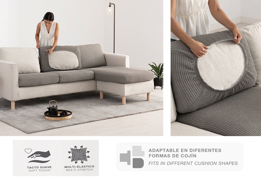 Lo último en fundas de sofá, estas fundas de cojín son la última tendencia. Ahora nuevas medidas plus para los cojines asiento o respaldo.