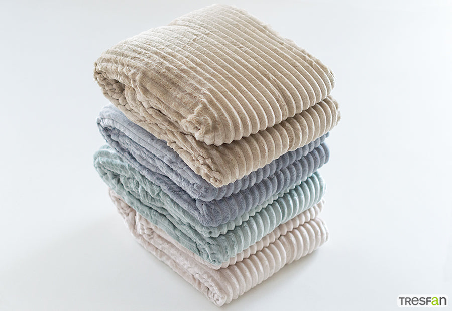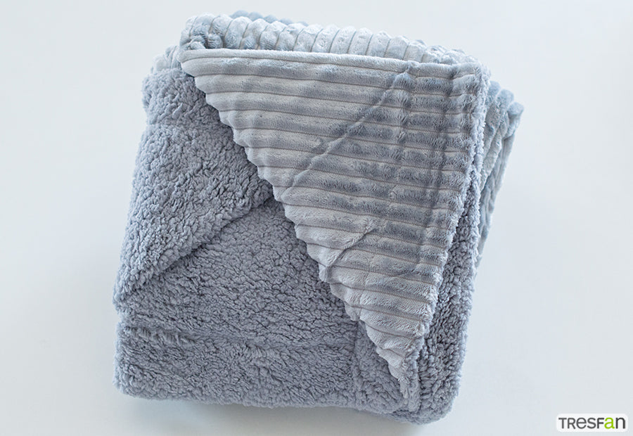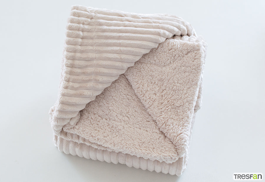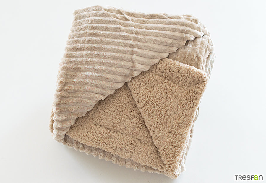 Manta plaid confeccionada con sedalina en la cara principal y sherpa borreguito a tono en el reverso de la marca DN MODA modelo Alice