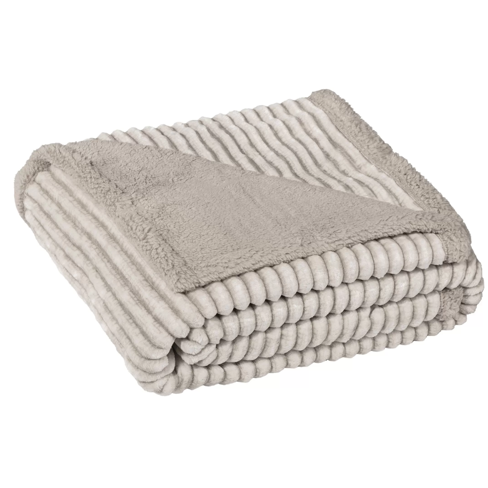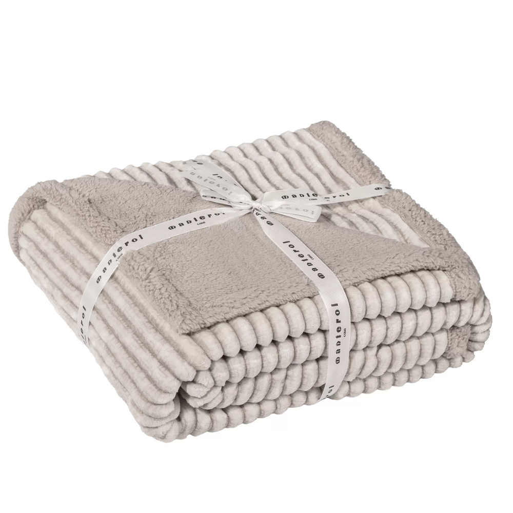 Manta plaid sofá borreguito rayas beige - Lines de Manterol