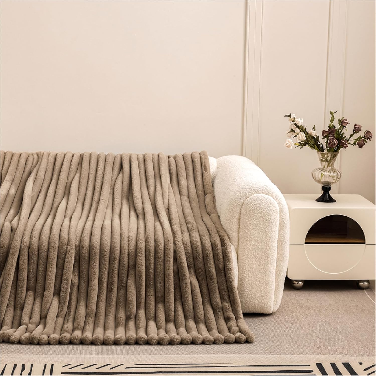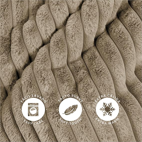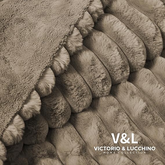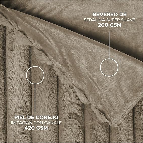 Manta Plaid Victorio & Lucchino Imitación Piel De Conejo Canalé con Reverso Sedalina color moka