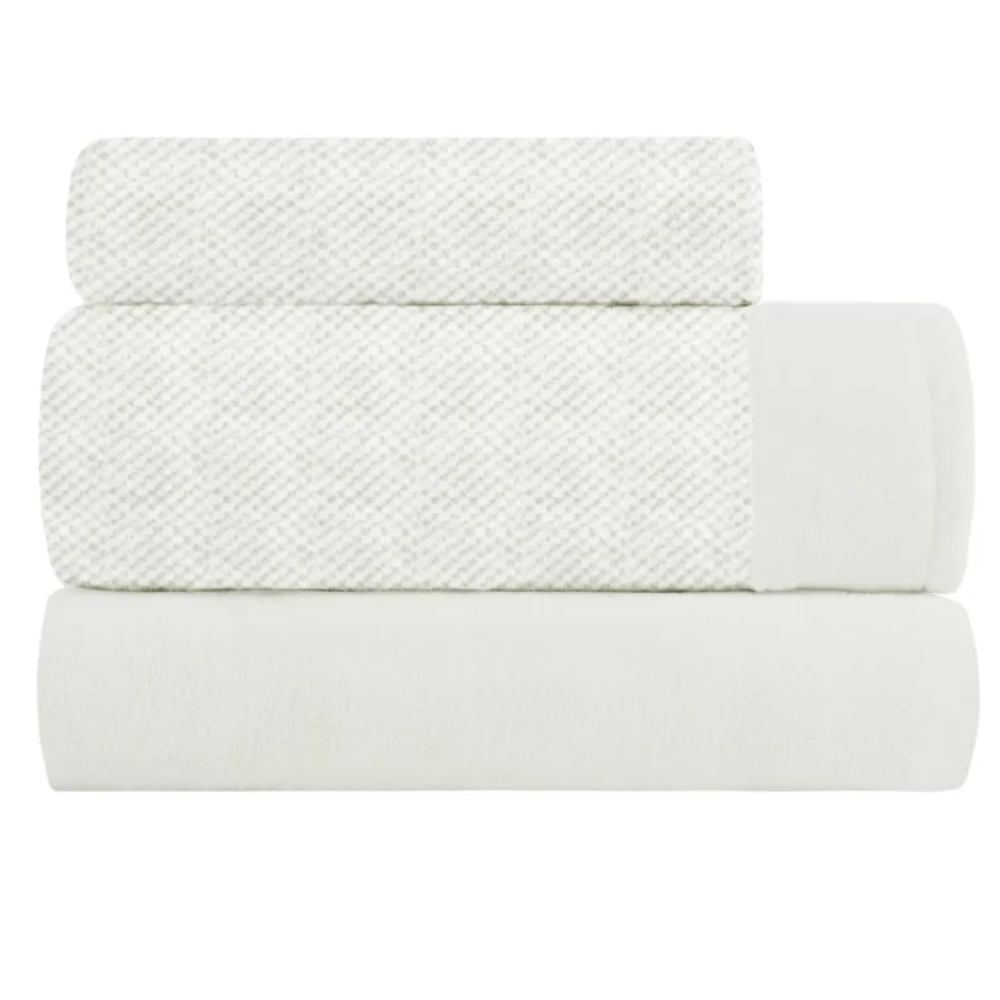 Juego de sábanas de coralina color crema con puntitos en relieve, con tacto suave, ideales para los meses de invierno.